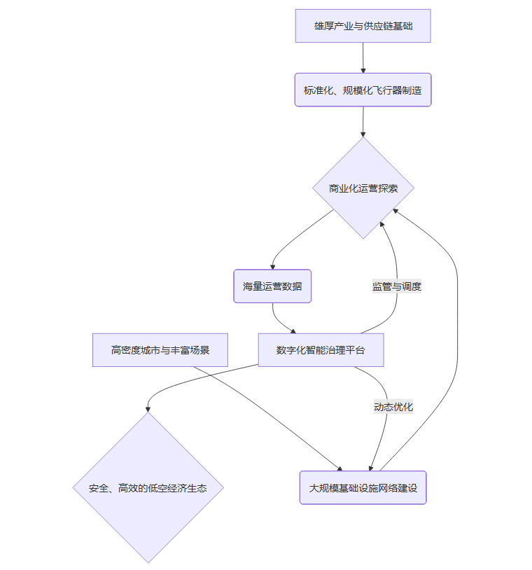 这条路径的核心逻辑是,通过工程化的方式,将基础设施、飞行器制造和数字化管理三者紧密耦合,形成一个从“单点示范”到“区域网络化运营”的正向循环。其目标是率先在城市环境中跑通低空经济的规模化商业模型,建立起可复制的行业标准和运营范式。