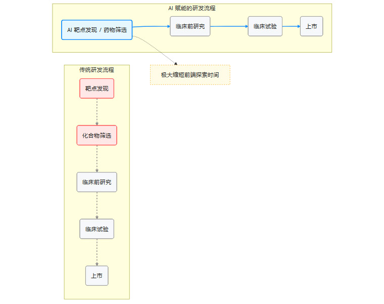后端增效。通过提供更精准、机制更明确的候选药物,AI大大提高了后续临床前和临床试验的成功率。它帮助研究人员**“快速失败,廉价失败”(Fail Fast, Fail Cheap)**,尽早淘汰掉那些没有潜力的候选者,将宝贵的资源集中在最有希望的项目上。