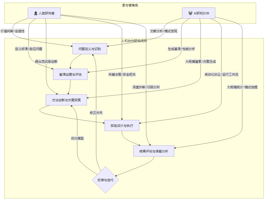 人机共同改进的运作模式,可以用一个清晰的迭代闭环来表示。这个闭环贯穿了科学研究的每一个阶段。