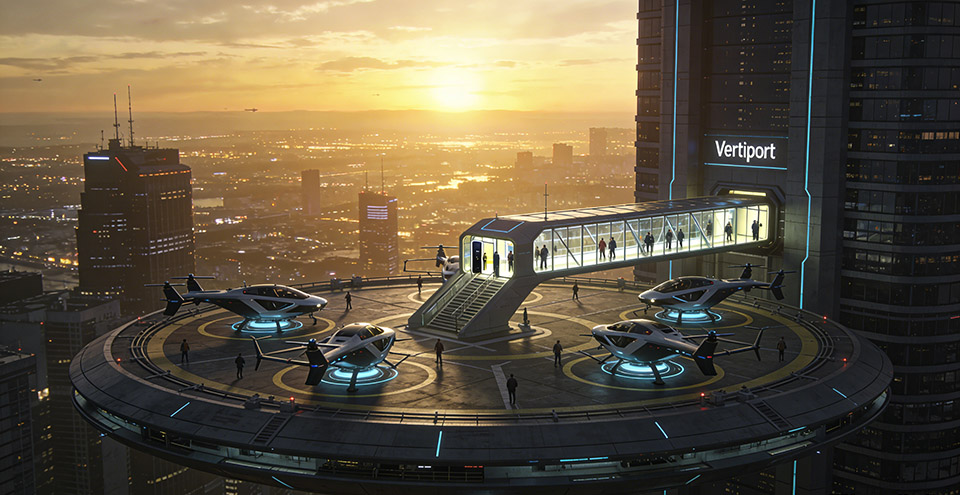 起降场站(Vertiports)网络:特别是对于eVTOL短途运输和城市物流场景,需要规划和建设密集的起降场站网络。这些场站不仅是简单的停机坪,更是集成了快速充电/换电、自动泊位、货物分拣、乘客安检等功能于一体的智能化交通枢纽。其选址、设计、建设和运营,将带动城市规划、建筑、能源、交通等多个领域的产业发展。