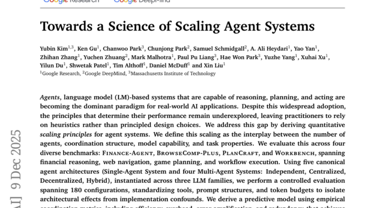 【摘要】Google与MIT联合研究打破多智能体“人多力量大”迷思,揭示工具权衡、能力饱和与错误放大三大定律,提出首个架构选择计算模型。