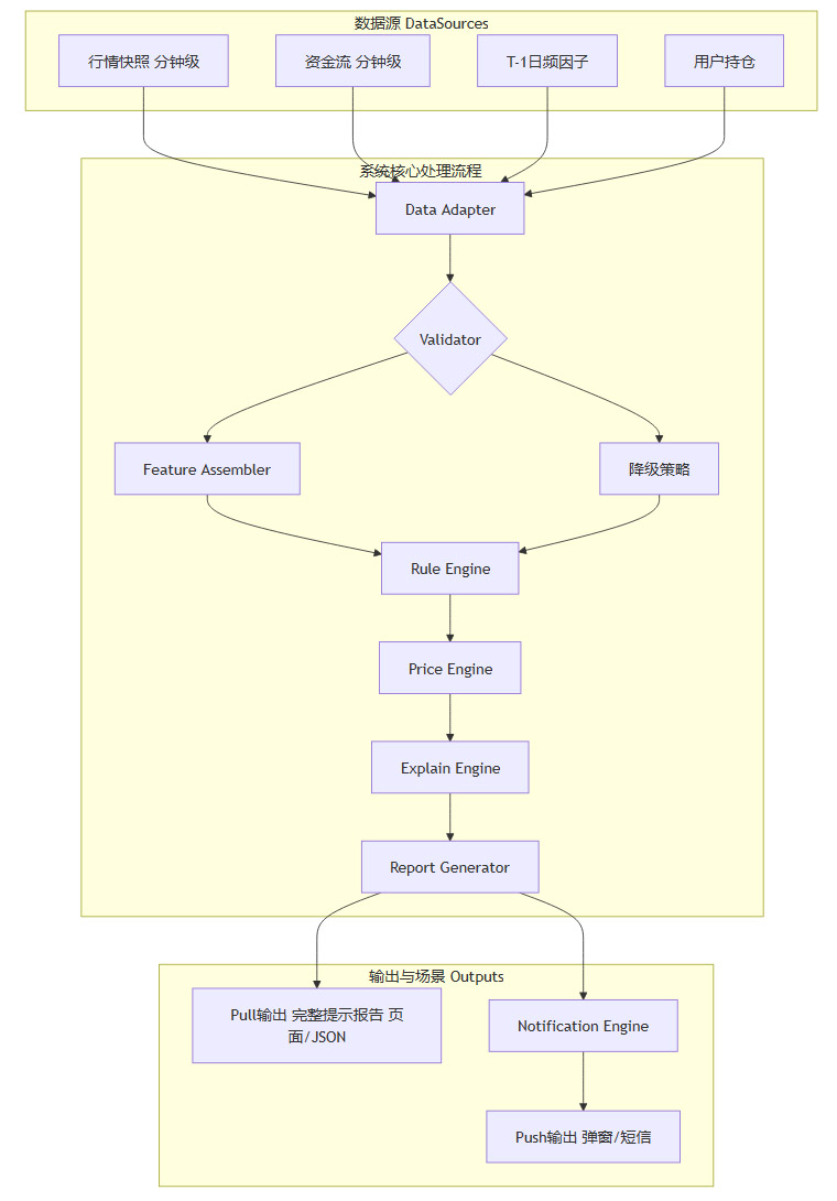 基于上述设计哲学,我们构建了一个模块化、高内聚的系统架构。整个系统可以看作一条精密的流水线,原始数据从一端输入,结构化的决策报告从另一端输出。
