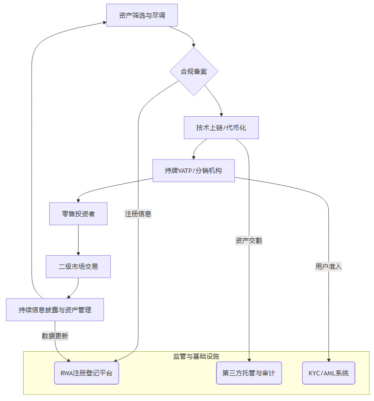 资产筛选与备案:只有符合“白名单”标准(后文详述)的资产,经过持牌机构的严格尽职调查,并在RWA注册登记平台完成备案后,才能启动代币化流程。