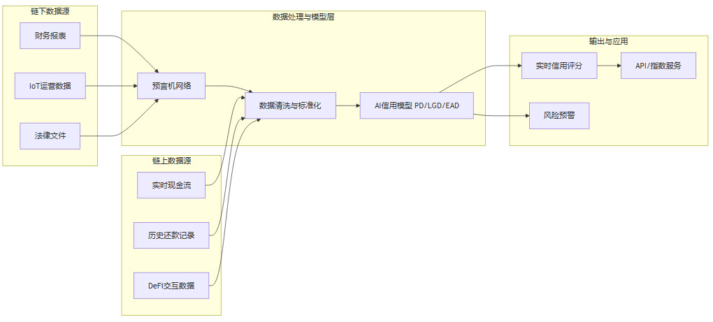 链上数据。资产池的实时现金流、借款人的历史还款记录、与其他DeFi协议的交互数据、治理代币持有者的行为分析等。这些数据客观、不可篡改。