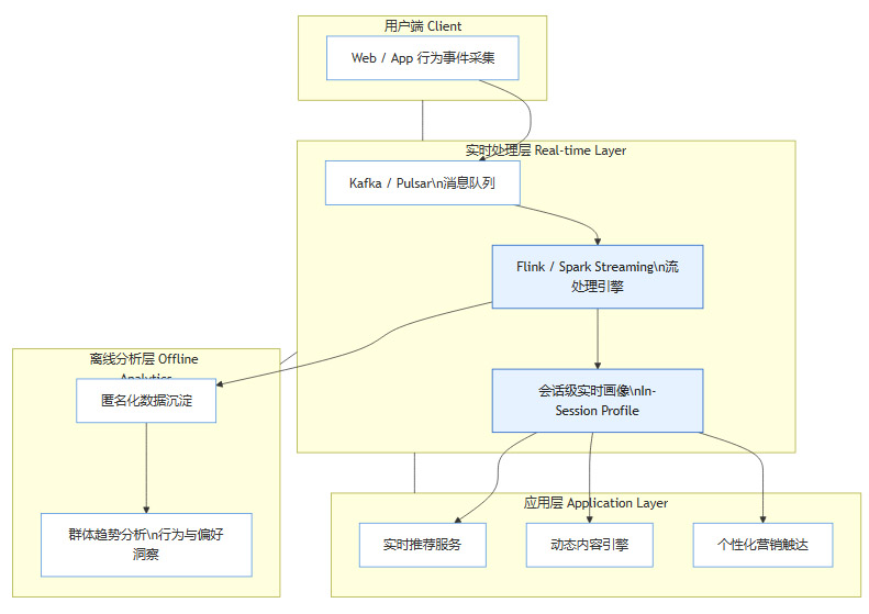 实时应用:推荐系统、内容引擎等下游应用直接调用这个“会话级画像”来提供服务。会话结束后,这个画像即被销毁,不会永久存储用户的详细行为轨迹。