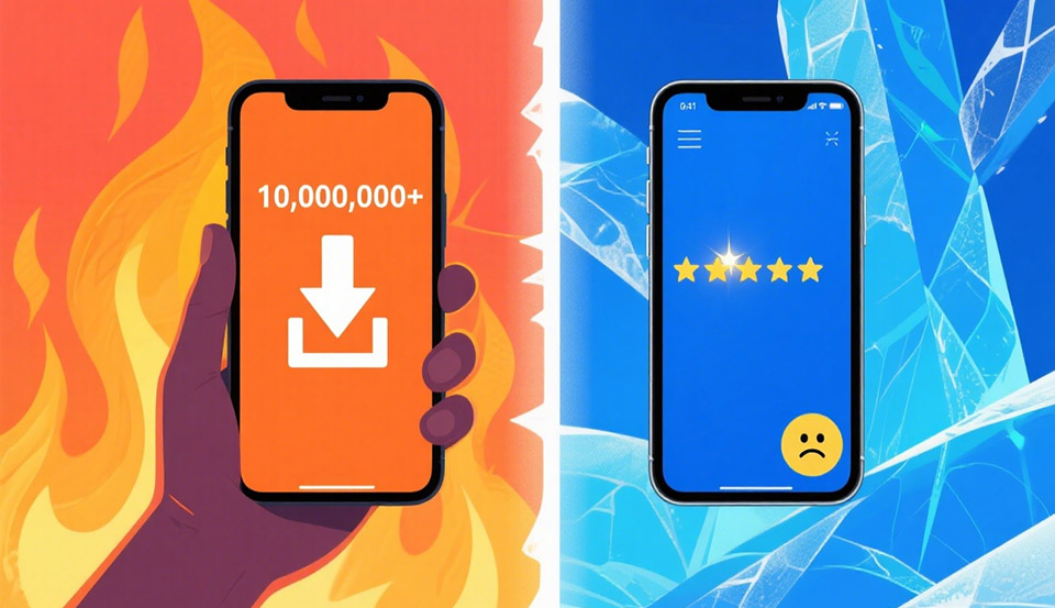 打开海外应用商店,一个有趣的现象随处可见。许多AI应用坐拥百万甚至千万级下载量,评分却常常在及格线边缘挣扎。我们分析的具体应用数据清晰地揭示了这一悖论。