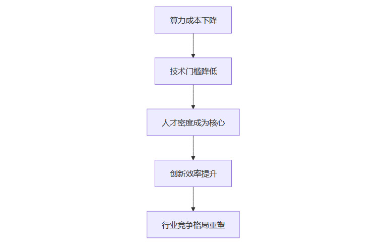 随着算力成本的持续下降,AI行业的竞争重心正从“拼算力”转向“拼人才密度与创新效率”。以往,巨头们通过堆砌算力实现技术突破的模式,已逐渐失效。未来,能够吸引和释放顶级人才潜力的公司,才有可能在AI技术竞赛中占据领先地位。