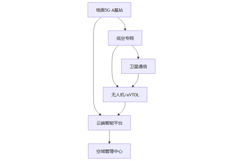 多网融合:地面5G-A、低空专网、卫星通信三网协同,保障飞行器在不同空域、不同场景下的无缝通信。
