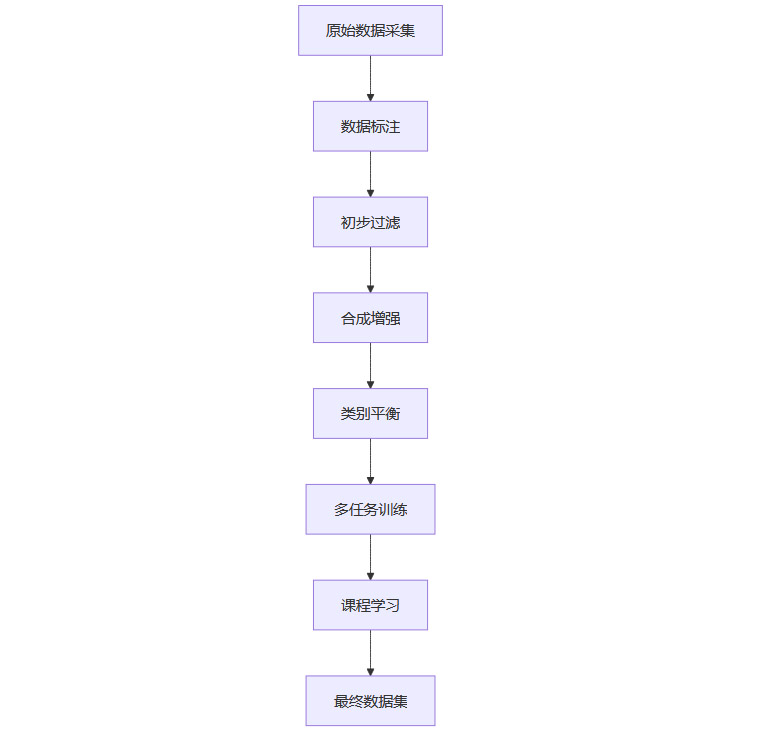 为保证数据质量,Qwen-Image采用了七阶段渐进式数据过滤流程,从原始采集、标注、过滤、合成增强到类别平衡,层层把关,确保每一条数据都具备高质量和高相关性。
