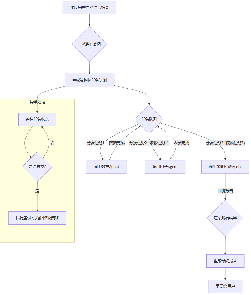 这是整个系统的“大脑”和“指挥官”,负责解析、规划、协调和监督。它本身不执行具体的量化任务,但它的智能化程度决定了整个系统自动化的上限。