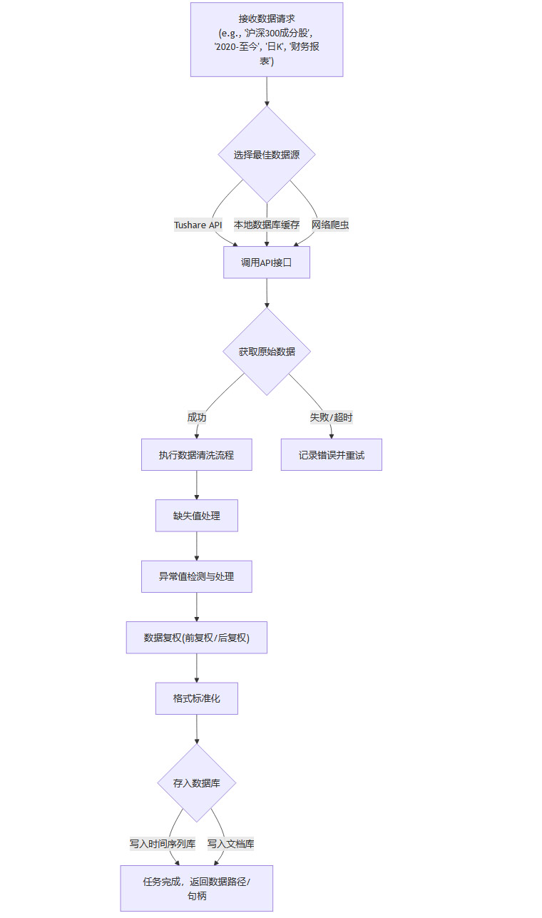 数据是量化交易的燃料,其质量、广度和深度直接决定了策略的上限。我们的数据策略遵循**“开源优先,专业补充”**的原则,并建立一套严格的数据处理流程。
