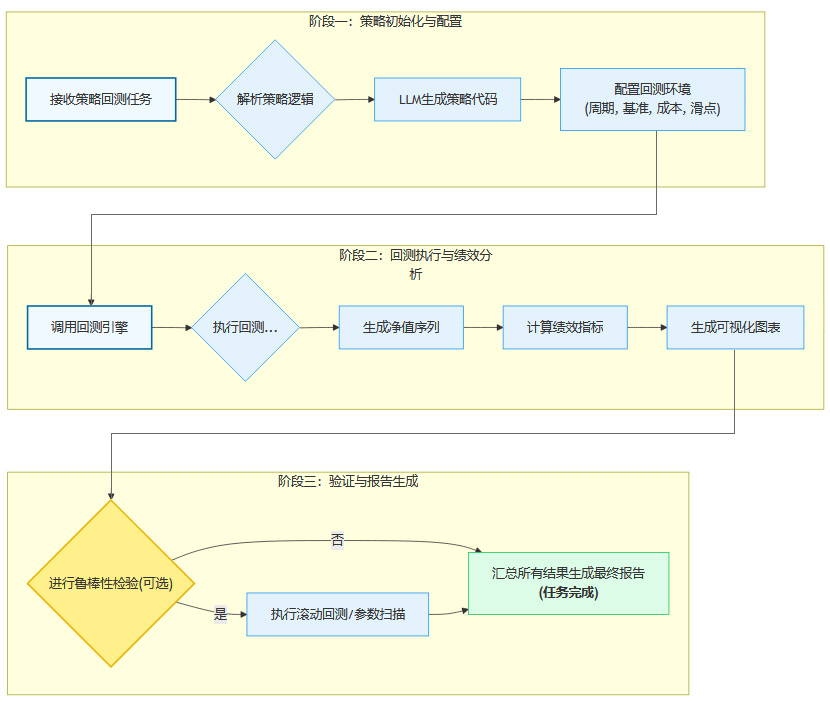 第二阶段,Agent原型开发。实现核心的几个Agent(数据、策略、回测),并让它们能够通过主控Agent的简单指令进行协作。交付物 一个最小化的多Agent协作原型。