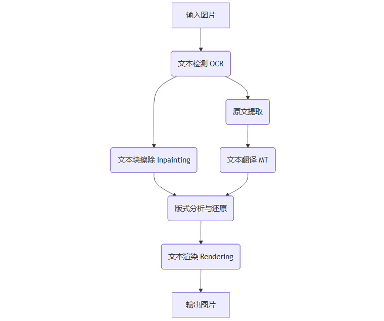 在电商、产品手册、在线教育等领域,“信息即画面”。图片翻译的需求非常旺盛。其技术流水线通常包括以下步骤: