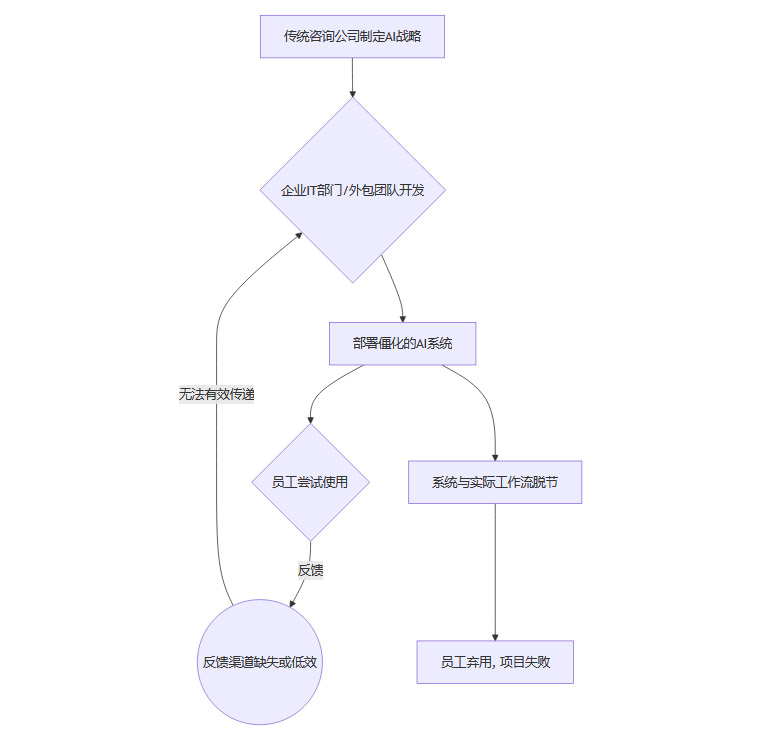 AI项目,特别是探索性的项目,极度依赖快速迭代和试错。而传统咨询的模式更接近于“瀑布式开发”,即先进行长时间的调研和规划,然后才进入开发阶段。当一个完美的战略规划终于出炉时,可能市场环境和AI技术本身已经发生了巨大变化,导致整个方案过时。