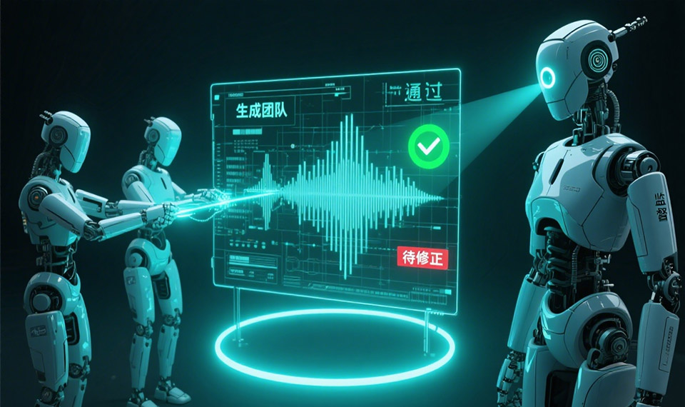 当生成团队提交了它认为满意的“音频草案”后,这份草案并不会直接输出给用户,而是要经过第二层架构——监督团队的严格审核。监督团队是最终质量的保证,其核心职责是确保时空一致性并验证整体输出质量。