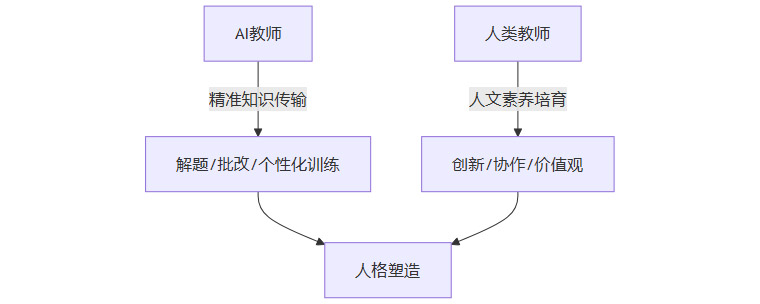 AI教师:负责标准化知识传授、个性化路径规划、自动批改等基础层任务