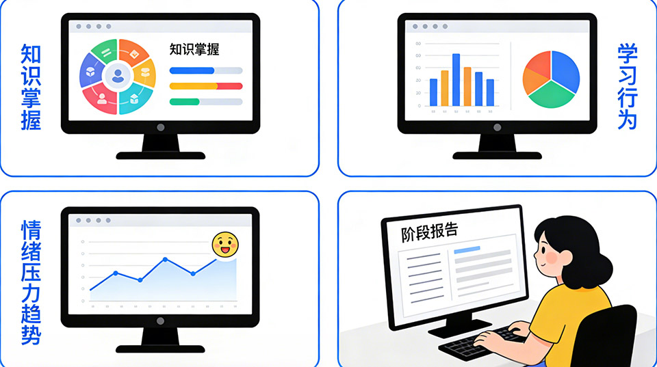 在解释给学生和家长看的时候,系统只用简单语言描述趋势,不给出“焦虑症”这种医疗级标签。例如可以说“最近一段时间你在做某科习题前会更频繁地犹豫或拖延,这通常意味着你对这门课感到更紧张,我们可以先从拆小任务开始”。
