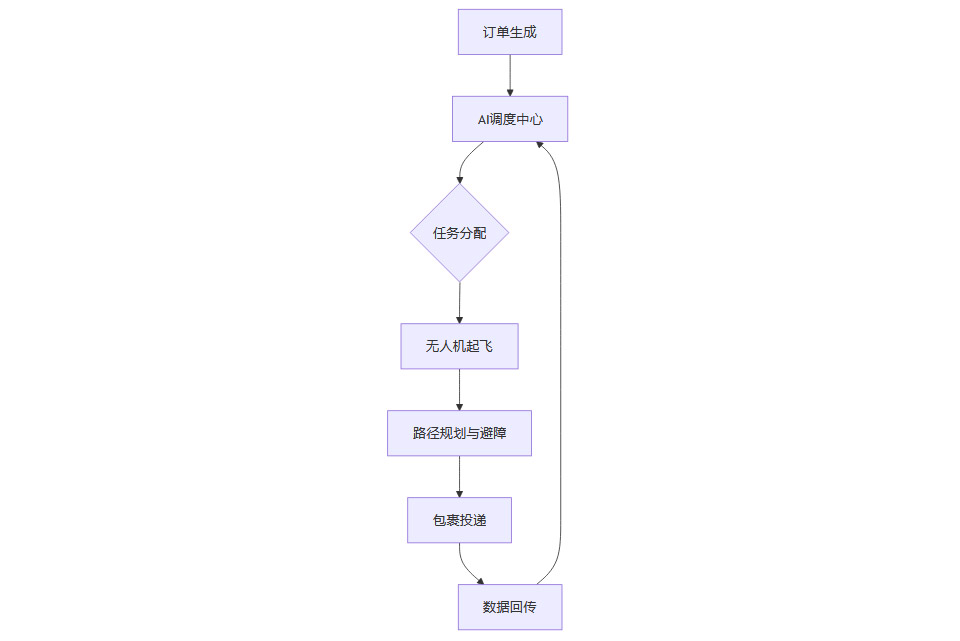 AI驱动的智能调度系统,能够根据实时数据动态调整无人机的飞行任务,实现全局最优的资源配置。以下为无人机物流网络协同的Mermaid流程图示例:
