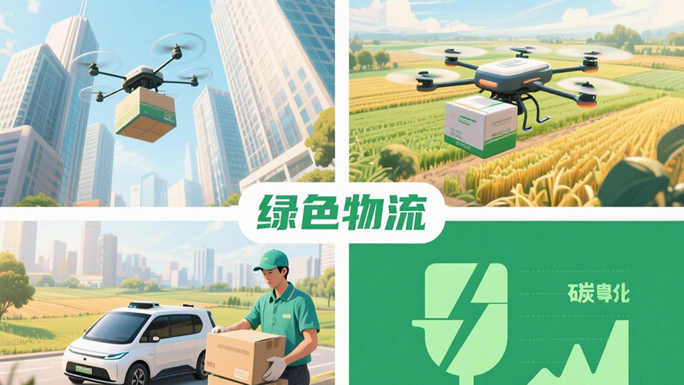 京东在浙江桐庐开通三条无人机航线,累计运行里程超7万公里,助力农产品快速出山。农村创新案例中,大学生团队“云翼智运”系统将山区物流末端配送时效提升1100%,运输成本降低200%,为农村绿色物流提供了新范式。