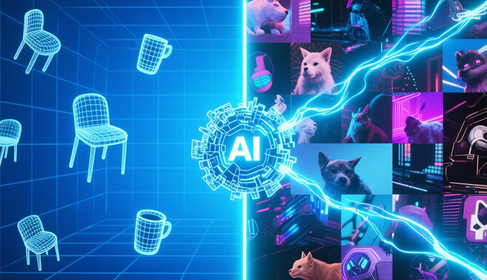 这个过程的精妙之处在于,它迫使模型必须学会从一组视角、光照、背景各不相同的照片中,提炼出这个物体的“本质”特征。比如,看到几张不同角度的猫的照片后,模型需要理解猫的通用结构(头、耳、身体、四肢、尾巴的相对关系),然后才能推测出一张全新视角下的猫应该是什么样子。这个过程极大地锻炼了模型的“3D想象能力”,即从2D图像集合中推断出3D几何结构的能力。
