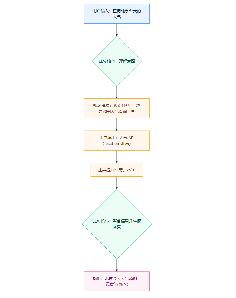 工具使用 (Tool Use)。这是智能体能够“执行”的关键。通过调用外部API或工具(如搜索、数据库查询、日历管理、订单系统接口等),智能体可以获取实时信息、操作外部系统,从而完成现实世界的任务。