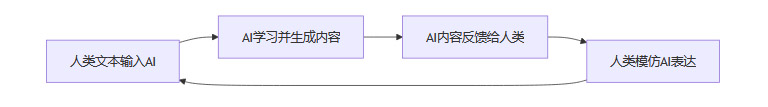 AI语言风格的扩散,并非单向度的“AI影响人类”,而是一个复杂的文化反馈循环。其过程可用如下Mermaid流程图表示: