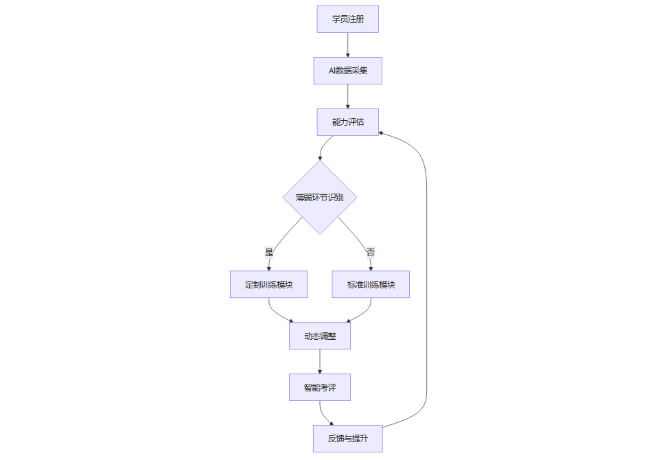 自适应学习:AI系统根据学员成长轨迹,动态调整教学策略,实现“千人千面”的个性化培养。