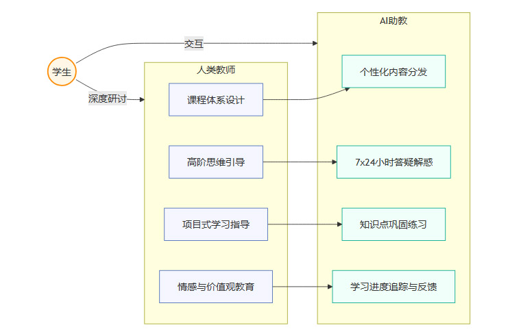 这种人机协同的模式,旨在融合人类教师的深度与AI助教的广度,实现教育质量与效率的最大化。