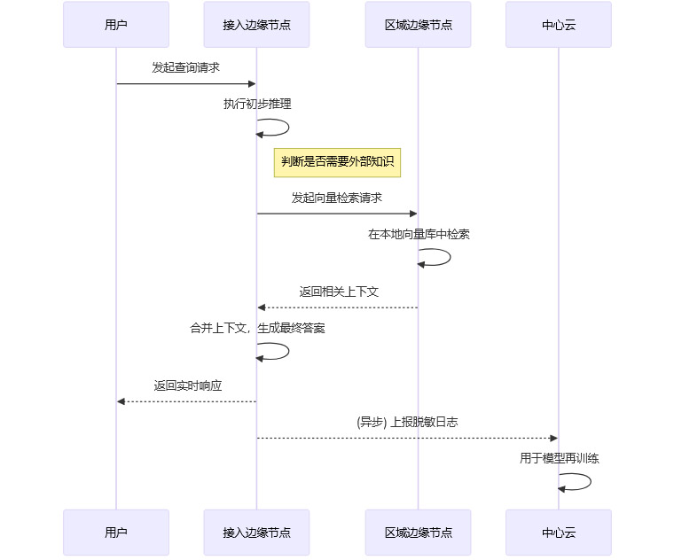 检索增强生成(RAG)是提升模型回答准确性和时效性的关键技术。在边缘架构下,RAG的实现方式也发生了变化,核心思想是让检索发生在离用户最近的地方。