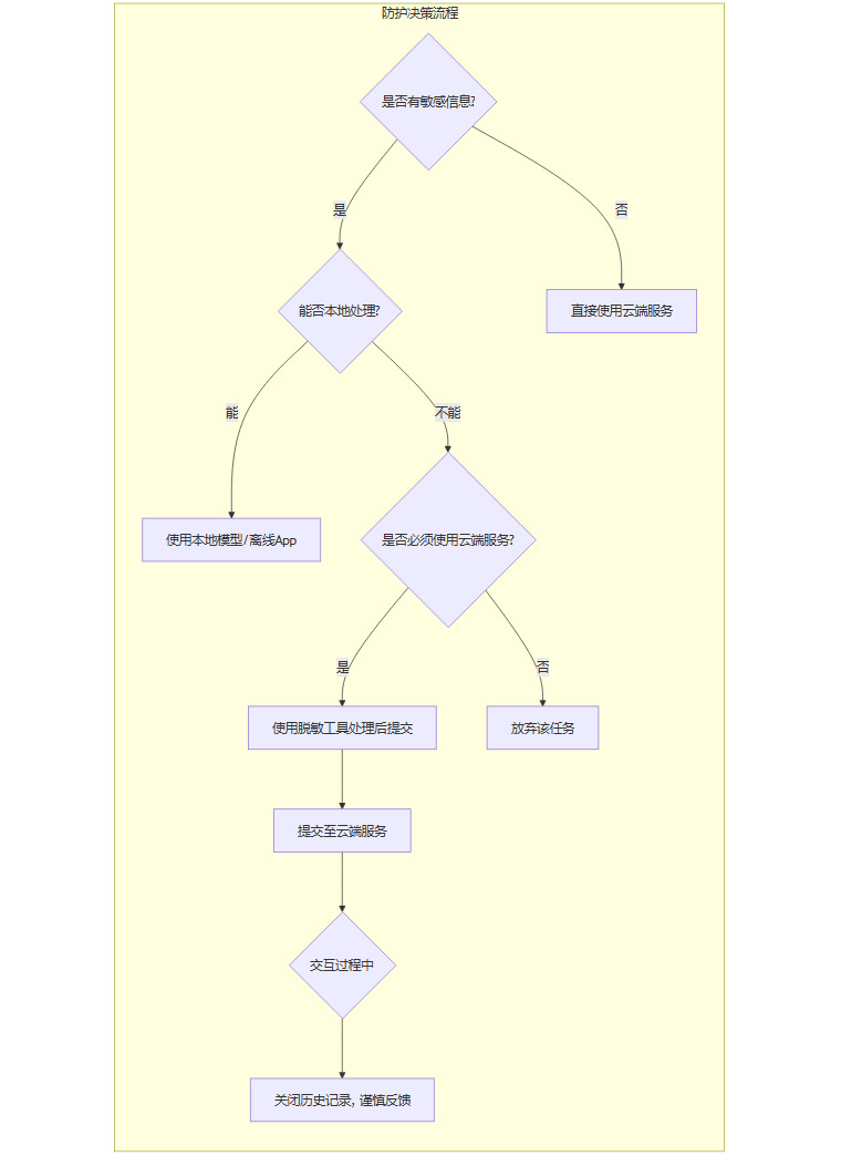 账号隔离:避免使用包含真实身份信息的手机号、主邮箱或常用社交账户注册AI服务。使用独立的、匿名的账号体系,可以有效降低信息被聚合画像的风险。