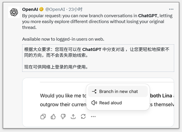 🌳 一、功能创新:对话结构从线性到树状的跃迁