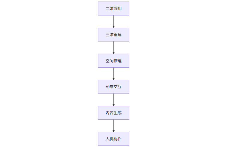 这一路径清晰地展现了AI从基础的二维感知,逐步进化到三维重建、空间推理、动态交互,最终实现内容生成与人机协作的完整链路。每一步都是AI迈向“完整智能”的关键台阶。