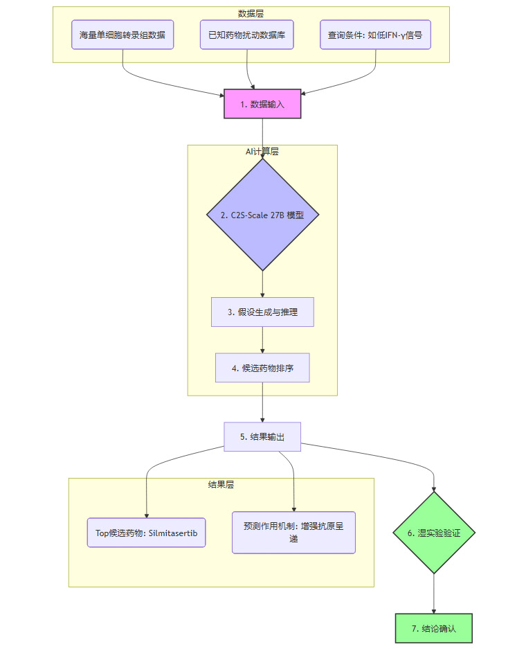 C2S-Scale 27B在此次研究中扮演的核心角色,是一个高效的“假设生成器”和“药物筛选器”。它完美展示了AI如何将复杂的生物数据转化为可执行的实验方案。