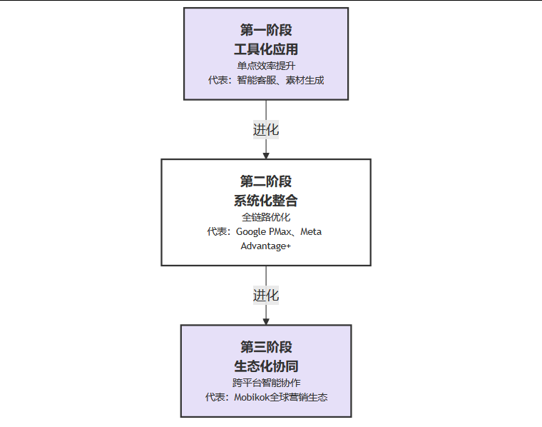 进入这个阶段,AI不再是孤立的工具,而是被深度嵌入到营销的全链路中,实现了从创意、投放到优化的系统化整合。AI的角色从“助手”变成了“操盘手”。