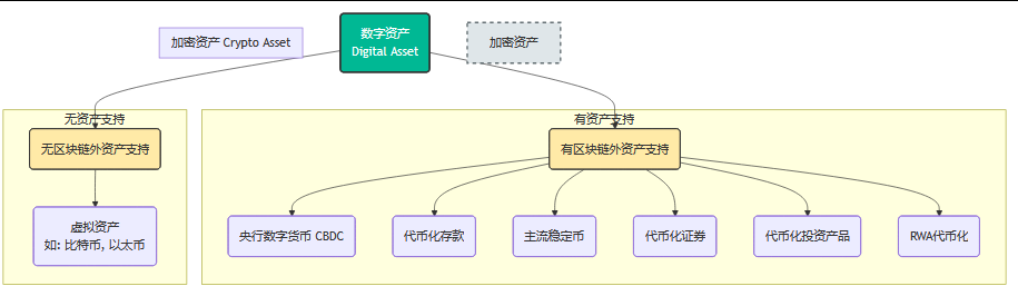 我们可以用一个公式来概括这个版图,数字资产 = 代币化的价值(Tokenized Value)。凡是以代币形态存在的价值,都属于数字资产的范畴。这个丰富的数字资产生态系统,可以用下图清晰地勾勒出来。