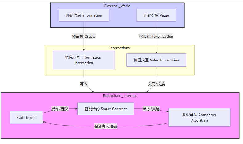 在这个范式中,区块链与外部世界存在两种关键的交互方式。