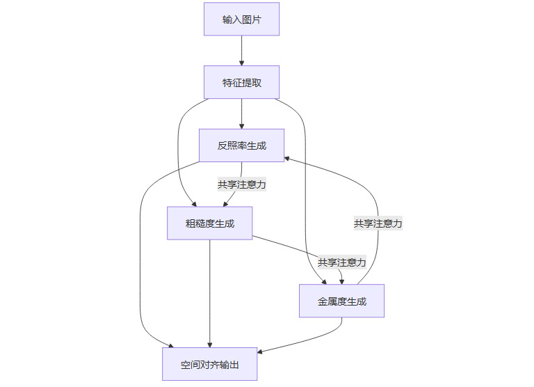 多通道并行生成:反照率、粗糙度、金属度三贴图同步生成。