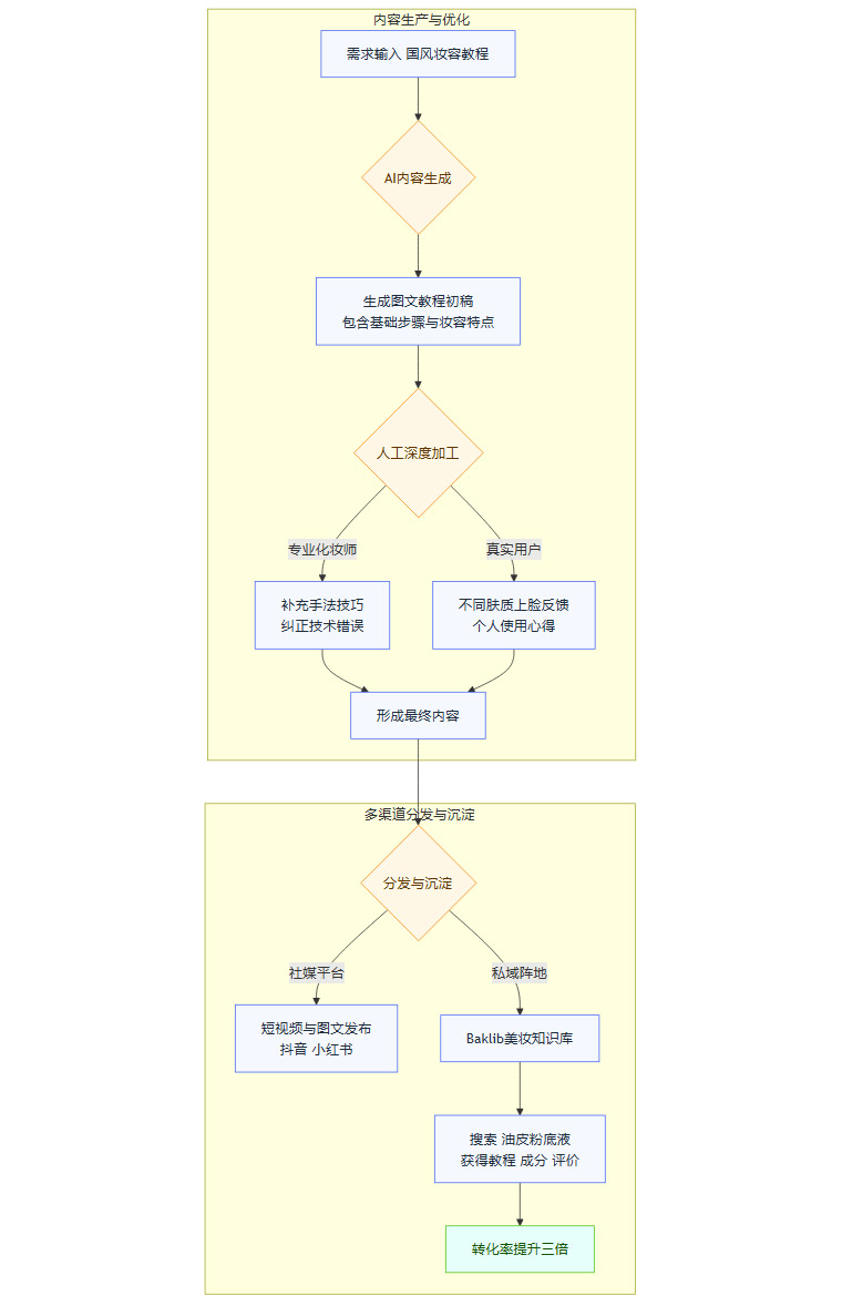 过去,品牌做内容营销,多是在微信文章中生硬地植入产品信息。现在,模式完全不同了。美妆品牌“花酉子”的实践堪称典范。他们的人机协同工作流如下。