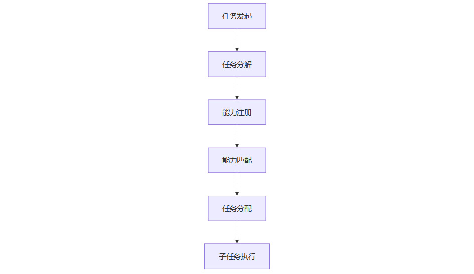 任务分配:根据能力匹配结果,将子任务分配给对应Agent,形成任务执行链。