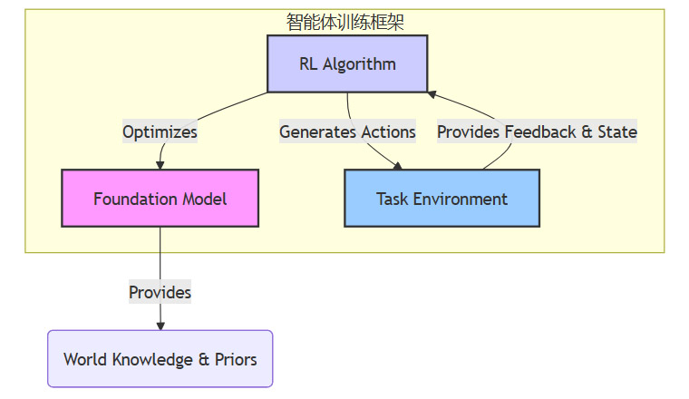 这三个要素共同构成了一个完整的学习闭环。基础模型提供初始能力,任务环境提供学习场景,强化学习算法则在两者之间进行迭代优化,最终将外部任务的要求,内化为模型自身的策略能力。