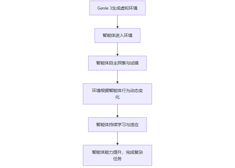 传统AI训练依赖大量标注数据,难以覆盖所有可能场景。Genie 3通过生成无限多样的虚拟世界,使AI智能体能够在“世界驱动”的环境中自主学习,极大提升了泛化能力和适应性。