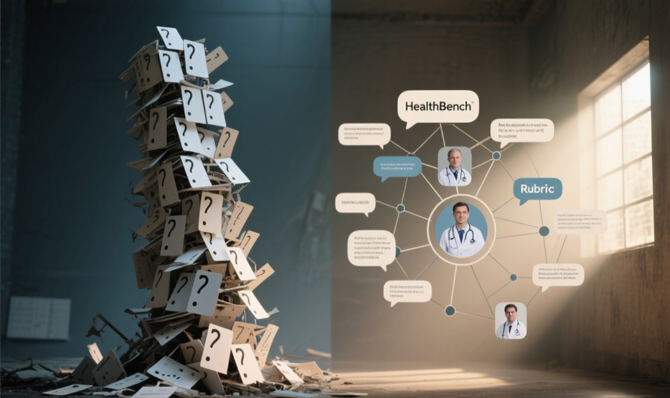 正是在这样的背景下,OpenAI于2025年推出了HealthBench——一个旨在彻底颠覆现状的开源医疗测试基准。它毅然“告别选择题”,将目光投向了真实世界。它不再满足于考核“知道什么”,而是聚焦于“如何行动”。HealthBench不仅是一个评测工具,更是一种宣言,它试图为混乱的医疗AI评估领域,设立一个全新的、更贴近临床现实的“黄金标准”。本文将带您深入这套基准的内核,从其设计哲学、技术实现到行业影响,全方位解析HealthBench如何成为推动医疗AI迈向安全、可靠与普惠未来的关键“试金石”与“航标灯”。
