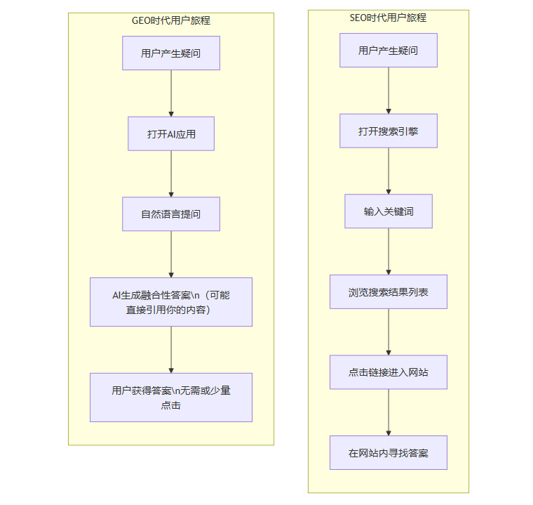 本文将系统性地解析SEO与GEO的底层逻辑,剖析从“关键词排名”到“AI答案引用”的范式转变。我们将深入探讨具体的技术策略、实操方法,并通过数据与案例展示其商业价值。同时,我们也会厘清常见误区,为个人与企业提供清晰的行动纲领,帮助大家抓住这轮由AI驱动的流量变革机遇。