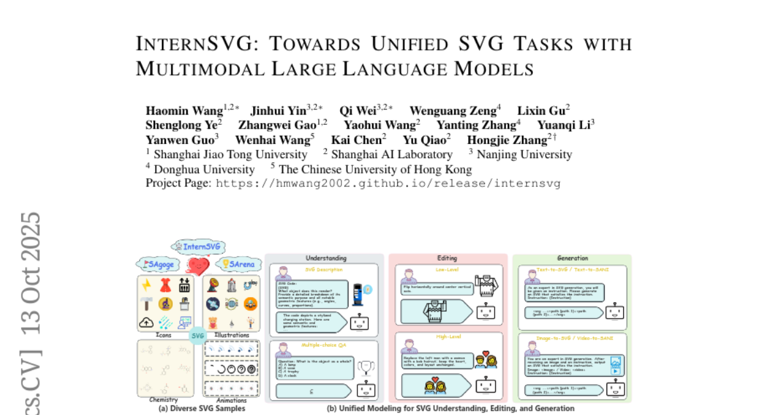 【摘要】多模态大模型InternSVG统一处理SVG理解、编辑与生成。通过超大规模数据集与统一建模,实现矢量图形AI的范式突破,为结构化内容创作提供全新工程范本。
