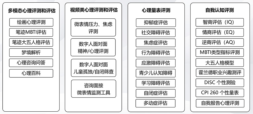 数字人交互:通过虚拟心理专家与用户的自然对话,获取语义、情感、行为等多维数据。