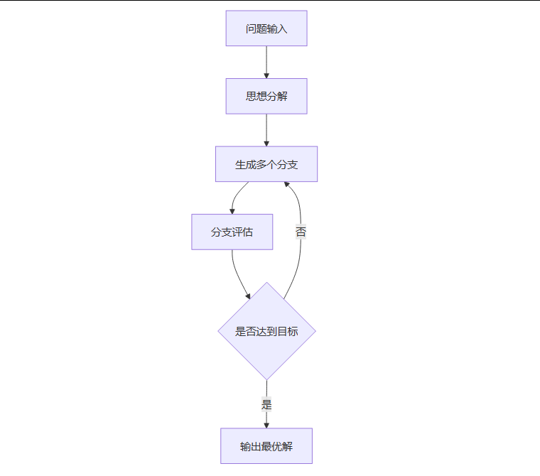 ToT的核心机制,可以概括为“分解-生成-评估”的循环: