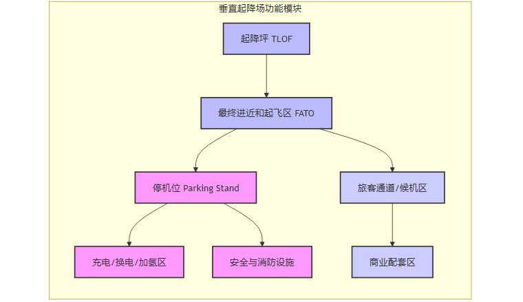 为了实现网络的快速复制和扩展,模块化设计是关键。一个典型的模块化垂直起降场,其功能分区如下。