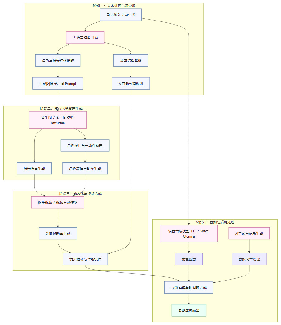 AIGC技术将上述复杂的生产流程,解构为一系列可由模型协同完成的模块化任务,构建了一条全新的、高效的数字内容生产管线(Pipeline)。