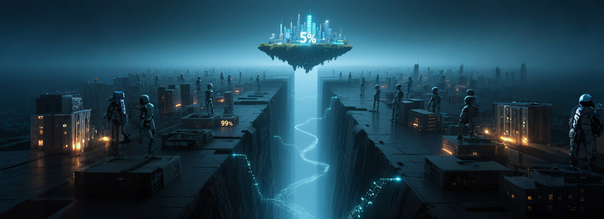 这意味着,只有区区5%的项目真正实现了商业化落地,并为企业带来了可观的真金白银。这个巨大的落差,被MIT的研究者们定义为一个刺眼的术语——“GenAI鸿沟”。它描述的并非技术上的差距,而是一种应用层面的分野。一边是极少数通过与业务流程深度绑定、具备持续学习与适应能力的“天选之子”,它们创造了数以百万计的价值;另一边,则是绝大多数停留在概念验证(PoC)阶段,无法对企业财务报表产生任何实质性影响的“迷途羔羊”。