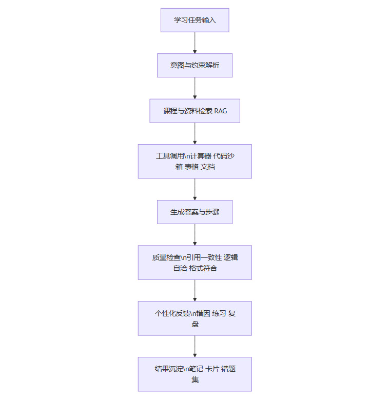 学生端的价值不在于一次性给出答案,而在于持续的错因定位与练习编排。一个可工作的学习智能体,至少要做到三件事。